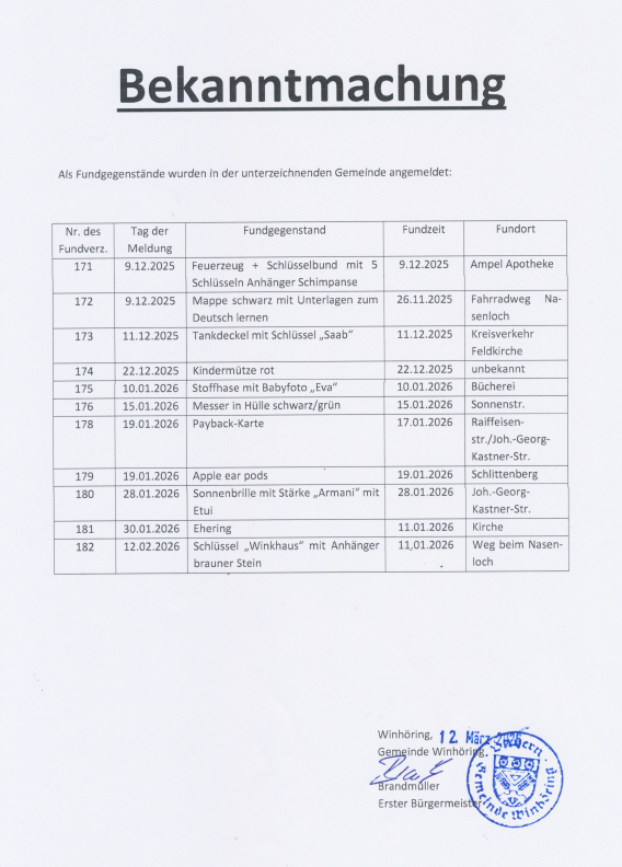 Als Fundgegenstände wurden angemeldet: